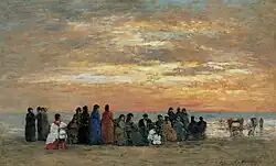 Eugène Boudin peint ses premières scènes de plage vers 1860, à l'instigation de son ami Ferdinand Martin.