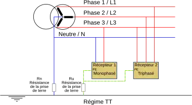 - Ce schéma de liaison à la terre est obligatoire chez les particuliers en France comme en Belgique (pour la Belgique, voir le RGIE).