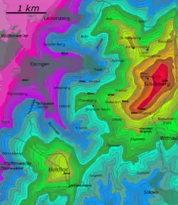 Le Schönberg est situé dans le graben du Rhin Supérieur, sur le contrefort de la Forêt-Noire.