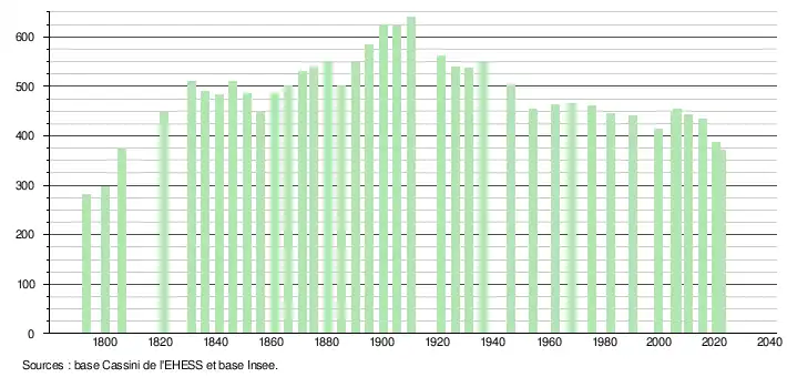 - ↑ Fiches Insee - Populations de référence de la commune pour les années 2006, 2007, 2008, 2009, 2010, 2011, 2012, 2013, 2014, 2015, 2016, 2017, 2018, 2019, 2020, 2021 et 2022.