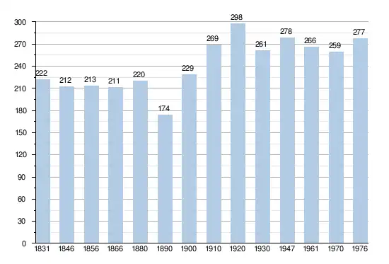 - Sources : INS, Rem. : 1831 jusqu'en 1970 = recensements, 1976 = nombre d'habitants au 31 décembre[2].