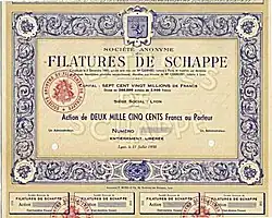La SAF, plus couramment appelée « La Schappe », possédera notamment des ateliers et filatures à Saint-Rambert-en-Bugey, Ambérieu-en-Bugey, Le Vigan, Pont-d'Hérault, Entraigues-sur-la-Sorgue, Pierre-Bénite, Lyon, Amplepuis, Troyes, La Croix-aux-Mines, en Suisse à Kriens et Emmenbrücke, en Italie à Rozzano, ainsi qu'une annexe à Moscou et des intérêts aux États-Unis[6].