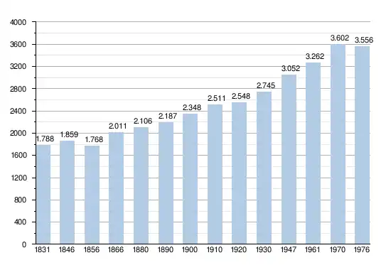 - Sources : INS, Rem. : 1831 jusqu'en 1970 = recensements, 1976 = nombre d'habitants au 31 décembre[2].