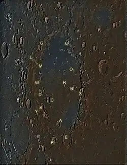 Par convention, ces caractéristiques sont identifiées sur les cartes lunaires en plaçant la lettre sur le côté du milieur du cratère qui est le plus proche de Schickard.