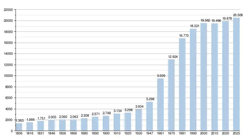 - Source : DGS - Remarque: 1806 jusqu'à 1981=recensement; depuis 1990=nombre d'habitants chaque 1er janvier[4]