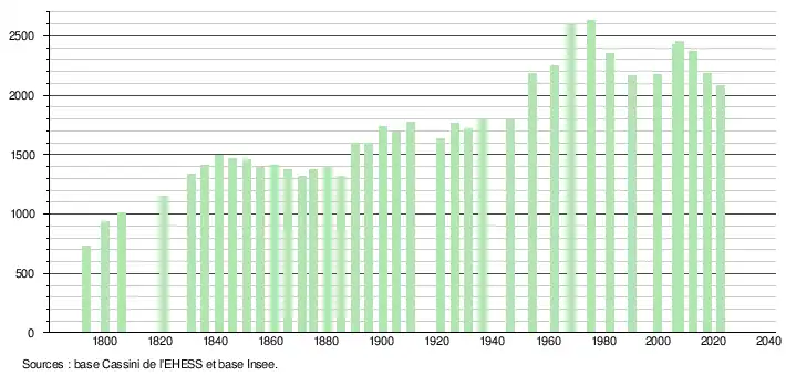 - ↑ Fiches Insee - Populations de référence de la commune pour les années 2006, 2007, 2008, 2009, 2010, 2011, 2012, 2013, 2014, 2015, 2016, 2017, 2018, 2019, 2020, 2021 et 2022.