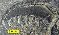 - ↑ Aria C., Caron J-B., Gaines R.,, « A Large new Leanchoiliid from the Burgess Shale and the Influence of Inapplicable States on Stem Arthropod Phylogeny », Palaeontology,
