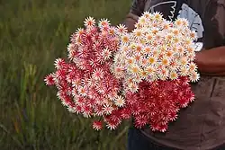 Une fois sèche, elle perd ses couleurs, mais peut se conserver longtemps[6] (comme les « immortelles »).