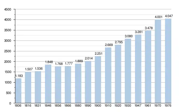- Sources : INS, Rem. : 1831 jusqu'en 1970 = recensements, 1976 = nombre d'habitants au 31 décembre[2].