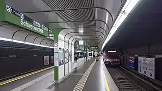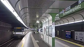 Schwedenplatz U4 est une station de passage de la ligne U1 du métro de Vienne. Elle est située entre la station Landstrasse, en direction du terminus ouest Hütteldorf, et la station Schottenring, en direction du terminus nord Heiligenstadt[1]. Elle dispose d'un quai central encadré par les deux voies de la ligne, situés dans une galerie le long du Franz-Josefs-Kai et du canal du Danube.