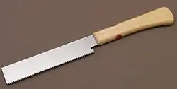 - scie dozuki : scie à dos permettant de limiter la profondeur de coupe, elle s'utilise surtout pour des découpes fines et précises ;