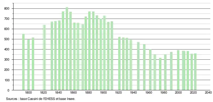 - ↑ Fiches Insee - Populations de référence de la commune pour les années 2006, 2007, 2008, 2009, 2010, 2011, 2012, 2013, 2014, 2015, 2016, 2017, 2018, 2019, 2020, 2021 et 2022.