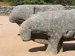 Au centre de la péninsule, entre les rivières Douro et Tage, avec quelques petites ramifications vers d'autres régions, on a trouvé des pierres de granit dispersées en grand nombre, grossièrement sculptées en forme de taureaux, de sangliers, d'ours et même d'éléphants et de rhinocéros, dont certaines portent des inscriptions ibériques ou romaines, peut-être ajoutées plus tard. Les plus célèbres de ces monuments sont les quatre du site connu sous le nom de Taureaux de Guisando (Ávila), lieu célèbre pour la prestation de serment d'Isabelle la Catholique en tant que princesse de Castille. Ils sont tous classés par les archéologues comme des œuvres du même art que les sphinx du Levant, bien qu'ils soient déjà dégradés et routiniers, et ils sont comparables dans le temps et dans leur destination aux ételas des guerriers lusitaniens mentionnés plus haut. Cependant, rien ne s'oppose à ce que nombre d'entre elles aient pu servir de jalons ou de panneaux indicateurs sur les routes de l'époque, ni à ce qu'elles contiennent toutes une idée mythologique, comme c'était le cas à l'époque.