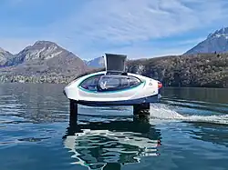 SeaBubbles est une start-up française basée sur le lac d'Annecy, qui conçoit et fabrique des hydroptères destinés au transport de passagers. Ces bateaux 100% électriques sont portés sur foils, ce sont des pionniers de la navigation zéro bruit, zéro vague, zéro émission.