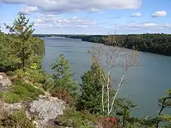 L'île fait environ 5 kilomètres de long et présente un rivage très découpé avec de nombreuses criques.