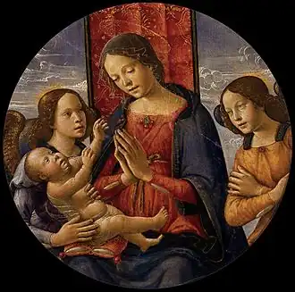 - La Vierge à l'églantine, huile sur peuplier, 60 × 34 cm, Palais des beaux-arts de Lille. Attribuée autrefois à Ghirlandajo[2]