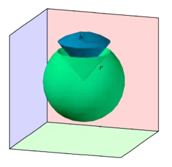 Si on note r le rayon de la sphère et h la hauteur de la calotte sphérique, le volume du secteur sphérique est[3]: