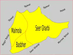 Il n'y a aucune grande ville en Seer Gharbi, c'est principalement un secteur rural montagneux, les villes les plus proches pour peuple en Seer Gharbi sont, Murree au sud, Abbottabad (la capitale de district au nord-ouest), Haripur (à l'est) aussi bien que Muzaffarabad au nord-est.