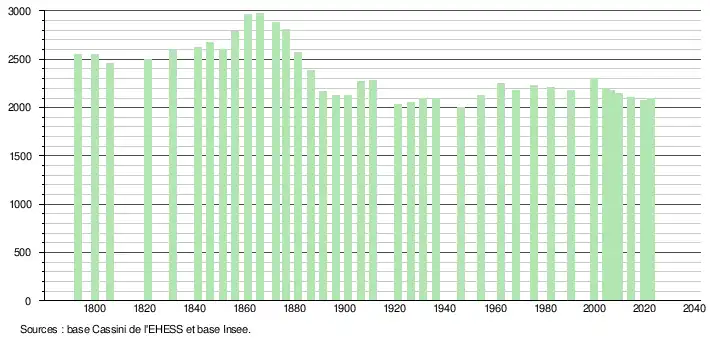 - ↑ Fiches Insee - Populations de référence de la commune pour les années 2006, 2007, 2008, 2009, 2010, 2011, 2012, 2013, 2014, 2015, 2016, 2017, 2018, 2019, 2020, 2021 et 2022.