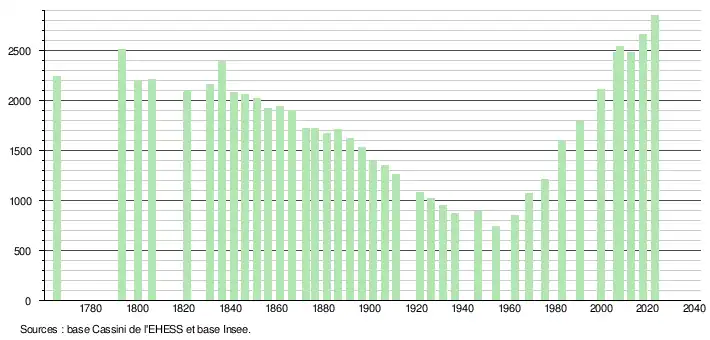 - ↑ Population municipale de référence en vigueur au 1er janvier 2025, millésimée 2022, définie dans les limites territoriales en vigueur au 1er janvier 2024, date de référence statistique : 1er janvier 2022.