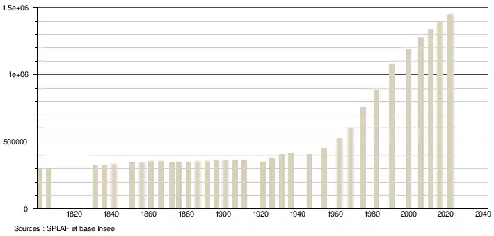 - ↑ Population municipale de référence en vigueur au 1er janvier 2025, millésimée 2022, définie dans les limites territoriales en vigueur au 1er janvier 2024, date de référence statistique : 1er janvier 2022.