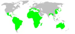 Les espèces de cette famille se rencontrent en Afrique, en Amérique, dans le Sud de l'Asie, dans le Sud de l'Europe et en Océanie[1].