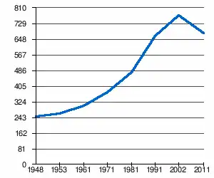 | 250 | 263 | 305 | 373 | 475 | 665 | 774[2] | 683[1] |