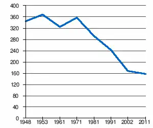 | 345 | 368 | 325 | 358 | 292 | 242 | 168[2] | 158[1] |