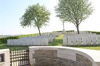 Ce cimetière fut créé par la 33e Division. Il contenait à l'origine 60 tombes, datant des combats du au , la majorité appartenait aux 6e ou 12e Lancashire Fusiliers ou aux 2e Argyll et Sutherland Highlanders. Après l'armistice, d'autres tombes ont été ajoutées. Il y a maintenant près de 147 victimes de la guerre de 1914-1918 sur ce site dont 6 sont non identifiées[1].