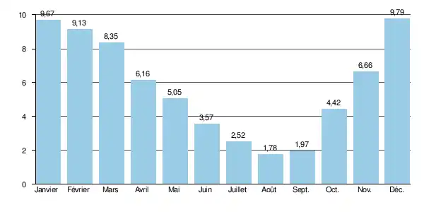 Les débits de la Semouse ont été observés durant une période de 36 ans à Saint-Loup-sur-Semouse (de 1974 à 2009) [2].