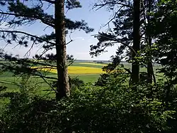 L'occupation des sols de la commune, telle qu'elle ressort de la base de données européenne d’occupation biophysique des sols Corine Land Cover (CLC), est marquée par l'importance des territoires agricoles (74,7 % en 2018), une proportion sensiblement équivalente à celle de 1990 (75 %). La répartition détaillée en 2018 est la suivante : terres arables (63 %), zones industrielles ou commerciales et réseaux de communication (13,3 %), forêts (9,7 %), prairies (8,3 %), zones agricoles hétérogènes (3,4 %), zones urbanisées (1,3 %), espaces verts artificialisés, non agricoles (0,9 %)[13]. L'évolution de l’occupation des sols de la commune et de ses infrastructures peut être observée sur les différentes représentations cartographiques du territoire : la carte de Cassini (XVIIIe siècle), la carte d'état-major (1820-1866) et les cartes ou photos aériennes de l'IGN pour la période actuelle (1950 à aujourd'hui)[Carte 2].