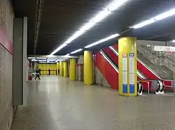 Elle dispose d'un quai central encadré par les deux voies de la section commune (U1/U2). Elle est également desservie par les rames des lignes de compléments de l'exploitation U7 et U8[4],[5],[6].