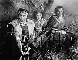- ↑ titre en français du film dans la filmographie de Hiroshi Inagaki dans l'ouvrage Le Cinéma japonais de Tadao Satō, Le Cinéma japonais (tome II), Éditions du Centre Pompidou, , 324 p. (ISBN 2-85850-930-1), p. 262-263