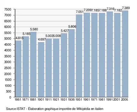 - ↑ (it) Popolazione residente e bilancio demografico sur le site de l'ISTAT.