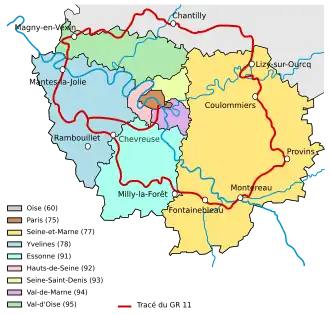 - ↑ « comité de la Randonnée Pédestre d'Ile-de-France - GR11® », sur idf.ffrandonnee.fr (consulté le )