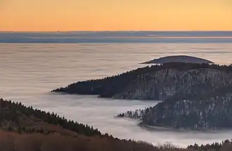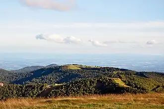 Information : le ballon d'Alsace est un point culminant qui se situe entre les départements des Vosges, de la Haute-Saône, du Territoire de Belfort et du Haut-Rhin et bénéficie d'un large panorama.