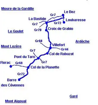 1. « GR72 Randonnée du Col du Bez en Ardèche à Barre des Cévennes en Lozère », sur www.gr-infos.com (consulté le )
