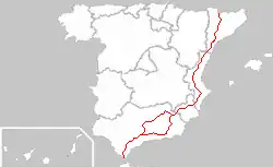 | 2 300 km | de Tarifa à Morella | Andalousie, Région de Murcie via Ronda, Grenade, Moratalla, Alcoià, Requena | Parc national de la Sierra Nevada (route sud) |