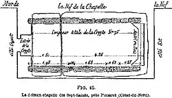 - ↑ Auteur anonyme, Le dolmen-chapelle des Sept-Saints en Bretagne, Matériaux pour l'histoire primitive et naturelle de l'homme : revue mensuelle illustrée... , 1888, lire en ligne.