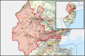 La Commission de redécoupage du Congrès du New Jersey a modifié les limites du district à compter du 6 janvier 2022. [2] Bien que le district reste compétitif, le district est plus républicain qu'il ne l'était auparavant.