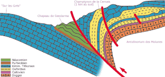 - ↑ Juliette Lazzarotto, Quentin Lazzarotto, « Le Chapeau de Gendarme, un pli disharmonique jurassien », sur ens-lyon.fr, .