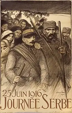 Dès le premier jour de la crise de juillet, la Serbie s'affirme comme l'un des principaux protagonistes de la Première Guerre mondiale. En effet, au départ crise austro-serbe[N 1], le conflit devient, par le jeu des alliances à l'échelle européenne, une guerre d'usure à l'échelle du continent. Dans un premier temps victorieux face à la seule armée austro-hongroise, les Serbes doivent cependant battre en retraite à travers l'Albanie sous la double poussée des armées germano-austro-hongroises venues du Nord et de l'Ouest, et bulgares venues de l'Est. Recueillis par les Alliés, les Serbes, contrairement aux Monténégrins, poursuivent le combat contre les puissances centrales. Remises sur pied, réorganisées, les troupes serbes sont déployées en Macédoine grecque tandis que leur pays est sous occupation austro-hongroise ou annexés de fait à la Bulgarie. Au terme de deux années d'une guerre d'usure, les Serbes, appuyés par les Alliés, reconquièrent leur royaume en quelques semaines à l'automne 1918, tandis que les Slaves du Sud de la double monarchie proclament leur indépendance dans le cadre d'un éphémère État, avant de se fondre, le 1er décembre 1918, dans le nouveau royaume des Serbes, Croates et Slovènes, but de guerre du petit royaume de Serbie.