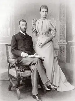 Tout d'abord, la princesse Élisabeth de Hesse-Darmstadt refuse l'offre de mariage[11] ; la reine Victoria, grand-mère d'« Ella » nourrissant des sentiments anti-russes, elle s'oppose à l'union du grand-duc et de sa petite-fille orpheline de mère. Néanmoins, les sœurs de la princesse allemande exercent une pression sur Élisabeth en vue d'un mariage politique ; toutefois, il lui est laissé libre choix[11]. Le couple séjourne ensemble pendant quelque temps à Wolfsgarten près deDarmstadt. Finalement en septembre 1883, la princesse Élisabeth accepte d'épouser le grand-duc[17]. Leurs fiançailles sont annoncés publiquement le , puis le grand-duc revient à Darmstadt rendre visite à sa jeune fiancée[18]. Le mariage est célébré au Palais d'Hiver à Saint-Pétersbourg le . Après le mariage et la conversion à la foi orthodoxe russe, la princesse Élisabeth devient la grande-duchesse Élizaveta Fiodorovna[19].