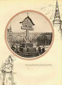 Les restes du grand-duc furent inhumés dans la crypte du monastère Tchoudov dans l'enceinte du Kremlin. Une croix de bronze commémorative dessinée par le peintre russe Vasnetsov (1848-1926) fut érigée sur le lieu de son assassinat. Après la chute des Romanov, la croix fut détruite le , sur ordre de Lénine, et fut le premier monument de la Russie impériale que les Bolchéviques abattirent[53].