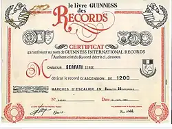 Le 19 juin 1983, Serge Serfati établit un record d’ascension de 1 200 marches d’escalier en 6 minutes et 33 secondes, reconnu par le comité français du Guinness des Records. Ce record met en lumière sa condition physique et son esprit de dépassement.