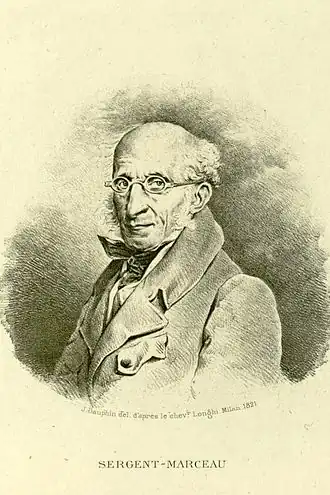 - ↑ Biographie universelle (Michaud) ancienne et moderne, Volume 39, article Sergent(Antoine François), Madame C. Desplaces, 1854, p. 96.
