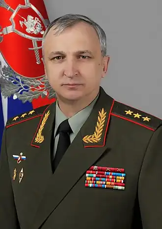 | Distinctions | Liste détaillée Ordre d'Alexandre Nevski Ordre du Mérite pour la Patrie, 2e classe Ordre de l'Honneur Ordre militaire de Saint-Nicolas Médaille de participation à l'opération militaire en Syrie Médaille « pour service impeccable », 3e classe (d) Médaille des 200 ans du ministère de l'Intérieur russe Médaille pour le renforcement de la coopération militaire Ordre du Courage (d) Ordre du Mérite pour la Patrie, 3e classe avec épées Médaille «Pour participation aux opérations antiterroristes» Médaille du service militaire distingué Ordre du Courage Médaille « Pour le retour de la Crimée » Ordre de l'Amitié Médaille des 200 ans du ministère de la Défense Ordre du Mérite pour la Patrie, 2e classe (d) Médaille du Jubilé des « 70 ans des Forces armées de l'URSS » (en) Ordre du Mérite militaire Médaille pour la valeur militaire (d) Ordre du Mérite pour la Patrie, 4e classe avec épées |