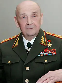 | Distinctions | Liste détaillée Ordre de Klement Gottwald (en) () Médaille du Jubilé des « 65 ans de la victoire dans la Grande guerre patriotique de 1941-1945 » (en) Ordre de Lénine Médaille commémorative du 850e anniversaire de Moscou (en) Médaille du Jubilé des « 50 ans de la victoire dans la Grande guerre patriotique de 1941-1945 » (en) Médaille pour le renforcement de la fraternité dans les armes (en) Médaille du Jubilé des « 60 ans de la victoire dans la Grande guerre patriotique de 1941-1945 » (en) Médaille de la défense de l'arctique soviétique Médaille du mérite au combat Commandeur avec étoile de l'ordre Polonia Restituta Médaille « vétéran des forces armées de l'URSS » (en) Médaille du Jubilé des « 40 ans de la victoire dans la Grande guerre patriotique de 1941-1945 » (en) Commandeur avec étoile de l'ordre du Mérite de la république de Pologne Médaille «Pour le renforcement de la fraternité lors des combats» 1re classe (d) Ordre d'Alexandre Nevski Ordre Tudor-Vladimirescu (d) Jubilee Medal "60 Years of the Mongolian People's Revolution" (d) Médaille du Courage Ordre du Service pour la Patrie dans les Forces armées de 3e classe Héros de l'Union soviétique Ordre de Karl-Marx Ordre de l'Honneur Médaille pour la victoire sur l'Allemagne dans la Grande Guerre patriotique de 1941-1945 Ordre du Drapeau rouge Médaille Pour Distinction en gardant la frontière d’État de l'URSS (en) Ordre de la Guerre patriotique de 1re classe Ordre du Mérite pour la Patrie, 2e classe Ordre de l'Étoile rouge Ordre de la Rose blanche Ordre de Souvorov, 1re classe Ordre du Mérite pour la Patrie, 3e classe Ordre du Mérite pour la Patrie, 4e classe Ordre du Mérite de la république de Pologne |