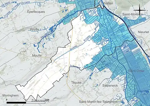 Une part importante du territoire communal (42 % de sa surface, soit 442 ha) est occupée par le marais audomarois, utilisé localement plus pour l'élevage que pour le maraîchage[4],