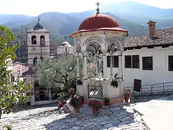 En 1345, les propriétés du monastère furent ravagées par l'invasion des Serbes et ne durent qu’à l'intervention d'Hélène, l'épouse du roi serbe Stefan Dušan, de ne pas être complètement détruites.